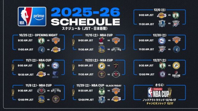 NBA・米国バスケ 【NBA 2025-26】アマプラ会員が追加料金なしで視聴できる対戦カードが発表