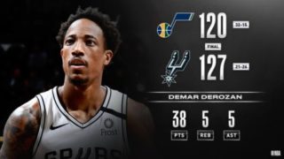NBA・米国バスケ デローザンが今季自己最多31点!オルドリッジ欠場のチームを牽引