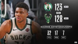 NBA・米国バスケ ヤニスのユーロステップは止めようがない!ケンバの40得点などで迫るBOSを振り切りMIL5連勝!