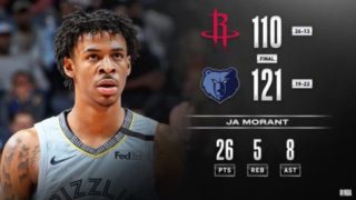 NBA・米国バスケ ジャ・モラントがFG10/11の26点8A!髭は乱発で41点取るものの評価はガタ落ちか?