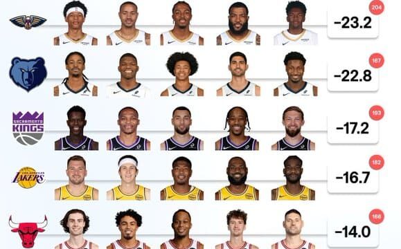 NBA・米国バスケ 【NBA】今季の「ワーストラインナップ」がこちら…(150ポゼッション以上プレー)