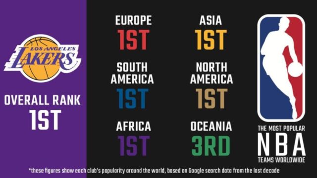 NBA・米国バスケ 【NBA】ほぼ全ての大陸でレイカーズが一番人気!