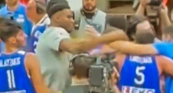 FIBAユーロバスケット ヤニスなにやってんだ…?ギリシャ代表のチームメイトの頭を強く叩く映像が話題に