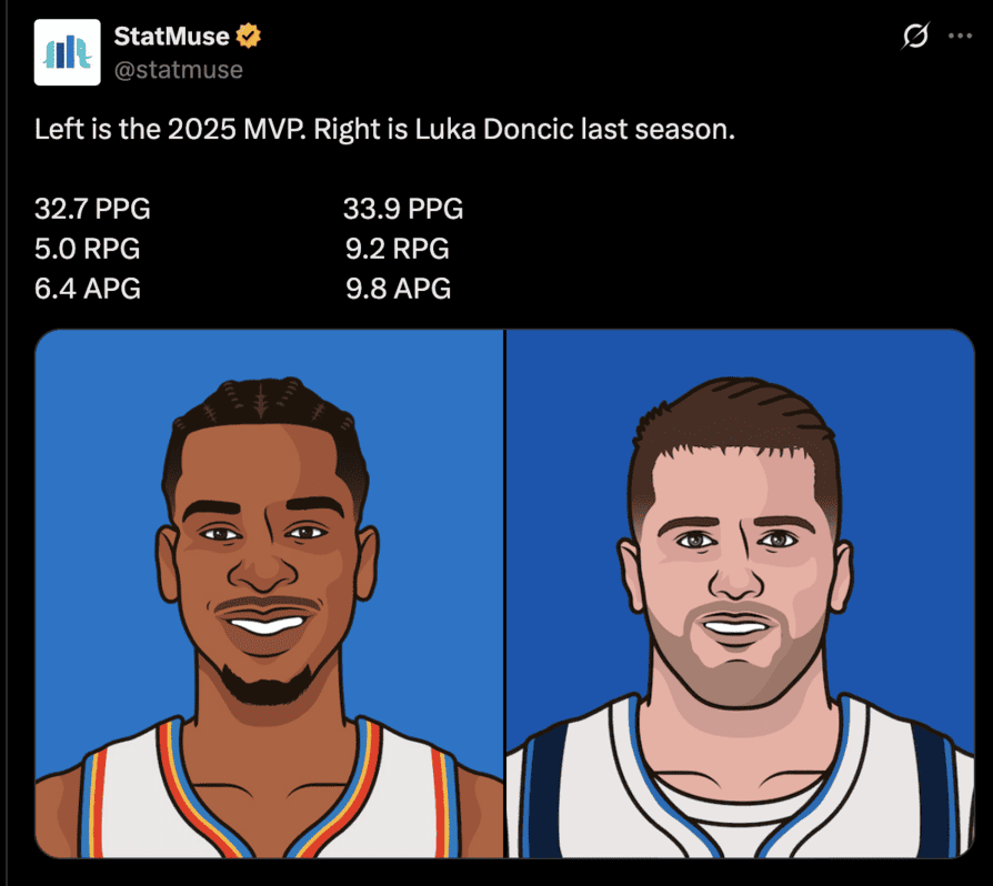 SGAがルカより先にMVP取ったってだけで、なんか腑に落ちない。