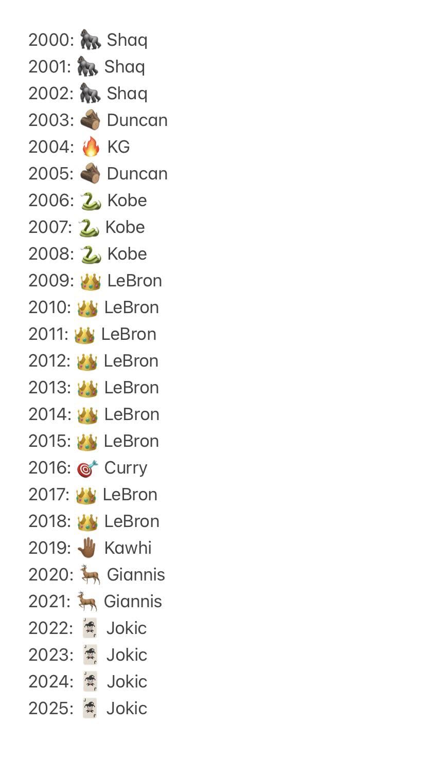 個人的には2024年はルカだったと思うし、レブロンの年をいくつか削ってダンカン、ガーネット、ダークに振ってもよかったかも