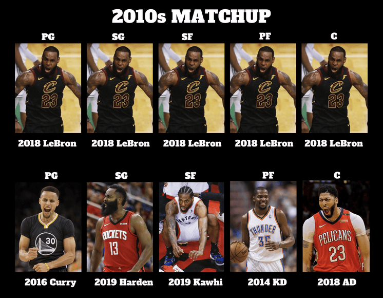 2010年代の方はハーデンがオンボールでレブロンを攻略できてADはインサイドに集中すれば可能。KDカリーカワイに関しては近い数字を出せるから、前述してるハーデンをクレイにした方が良いかと。
