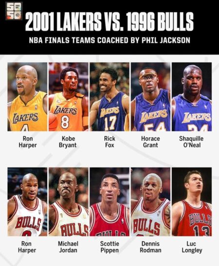 ブルズが7戦接戦で勝つと思う。スコッティとロッドマンが違いを作る。MJとコービーは拮抗してるが、シャックは誰にも止められない。ただ、ハーパーはもう少し全盛期に近い。