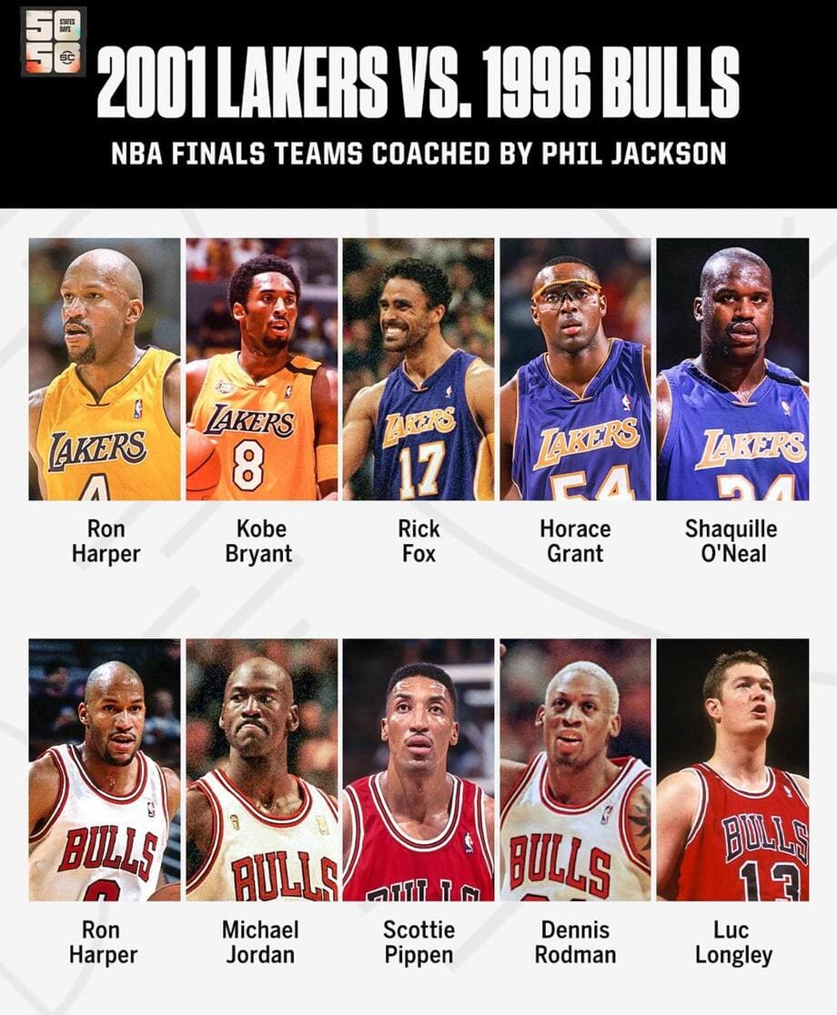 俺はレイカーズを推す。コービーとMJの差より、シャックとロンリーの差の方がずっと大きい。ブルズはそこまで大きなミスマッチを突けない。
