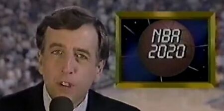 1988年にCBS Sportsが放送した特集「2020年のNBAはこうなる」は、未来予測をテーマにしたバラエティ色の強い映像企画で、4分18秒のダイジェストでは当時の「コンピューター解析」「専門家予測」といった演出を交えながら、32年後のNBA像を占っている。