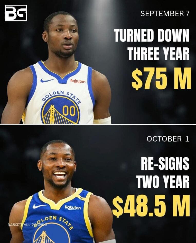 この2年契約はお互いに悪くない。ウォリアーズは契約枠を失わずに済むし、JKは来年もっと稼げるチャンスを得られて、最短でUFAになれる道が開ける。