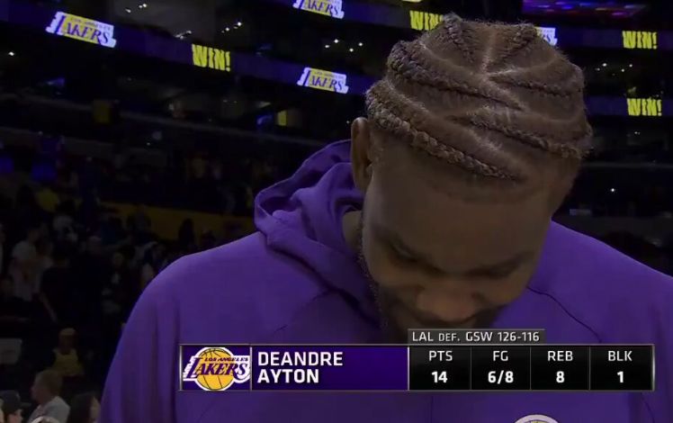 Deandre Ayton (14 points, 8 rebounds, and 5 assists) speaks with @LakersReporter after the Lakers defeat the Warriors, 126-116 in the preseason. pic.twitter.com/vpQHJYz1et