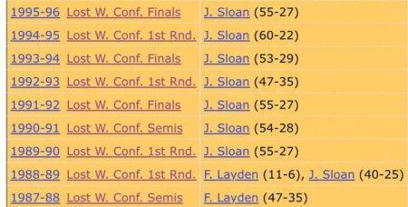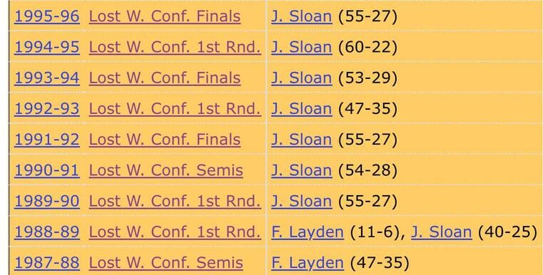 ジャズはレギュラーシーズンは良〜最高クラスだったけど、プレーオフでは噛み合わなかったり、相性の悪い相手に当たったりした年が多い。ショータイムのレイカーズや、クライド・ドレクスラーのいたブレイザーズ、