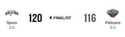 一方のウェンバンヤマは29得点、11リバウンド、そして9ブロックと圧倒的なパフォーマンスを披露し、スパーズが延長の末にペリカンズを120-116で下した。