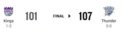 シェイ・ギルジャス=アレクサンダー(オクラホマシティ・サンダー)が31得点を挙げ、チームをサクラメント・キングス戦の逆転勝利に導いた。これでサンダーは開幕から5連勝となった。