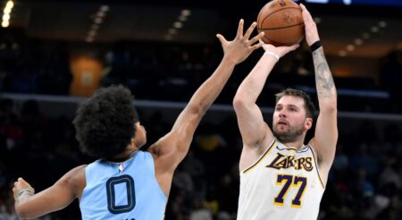 ルカ・ドンチッチ(ロサンゼルス・レイカーズ)は今季ここまで平均45得点・12リバウンド・8アシスト、シューティングは58%/35%/79%、トゥルーシューティング71%(TS%=シュート効率の指標)という数字を残している。