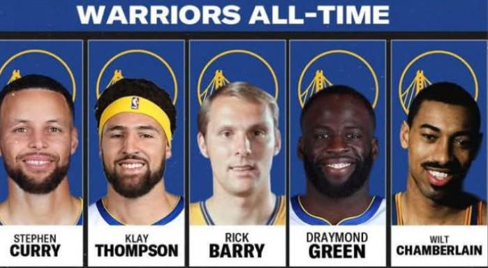 オールタイムのベスト5を選ぶとなると、人によって基準が全然違うもの。では、この画像の5人──ステフィン・カリー、クレイ・トンプソン、リック・バリー、ドレイモンド・グリーン、ウィルト・チェンバレン──が本当に“ウォリアーズ史上最強”の5人なのだろうか。