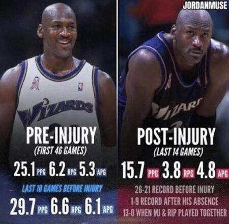 二度目の引退から戻って、またオールスター級の数字を出したのは普通に異常。ケガで止まっただけ。