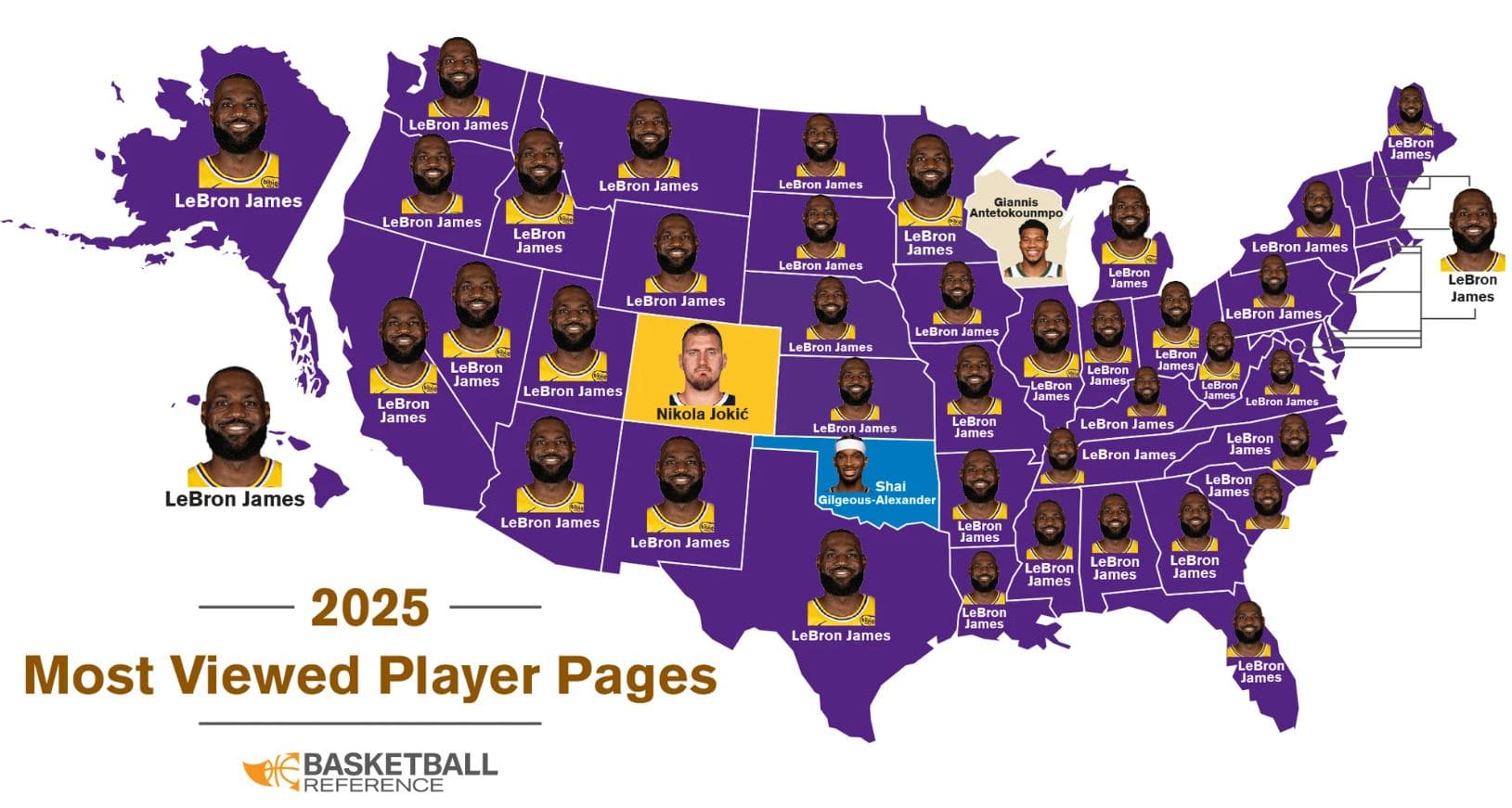 レブロンの選手ページが、コロラドとウィスコンシン以外ほぼ全ての州で一番見られてるってのは本当におかしい数字だよな。