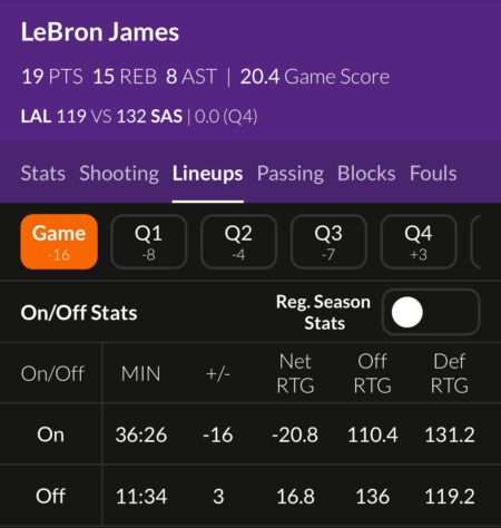 前半、スパーズは第2クォーターに17−2のランを作り、最大18点のリードを築いた。ステフォン・キャッスルとハリソン・バーンズが外から攻め続け、レイカーズのシーズンを通した外角守備の課題を突いた。