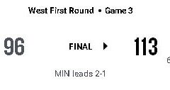 後半はキャッスルが主導権を握り、後半だけで21得点を決めた。サンアントニオは最後まで二桁リードを保ち、控え選手も得点を重ねて流れを渡さなかった。