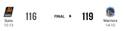 ゴールデンステイト・ウォリアーズがフェニックス・サンズを119-116で下し、連敗を3で止めた。
