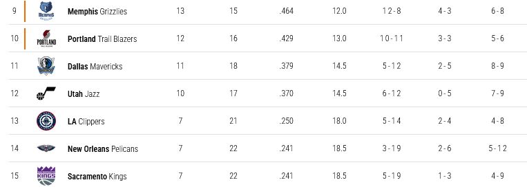 PIが今の感じだとGSW・MEM・POR・DAL・UTAだなNOPはひとまずUTA・DALに追い付けるか?