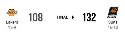 フェニックス・サンズがロサンゼルス・レイカーズに132-108で勝利した。