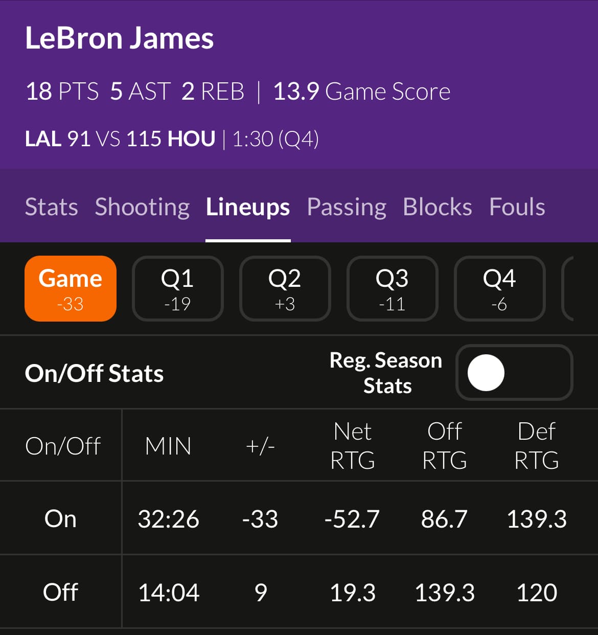 まあレブロンは近年シーズン単位でも悪くなってるが