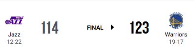 ゴールデンステイト・ウォリアーズがユタ・ジャズを123-114で下した。前日のオクラホマシティ・サンダー戦で大敗したあと、主力が戻って白星を拾った。