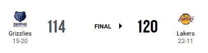 ロサンゼルス・レイカーズはメンフィス・グリズリーズに120-114で勝利した。