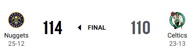 セルティックスは終盤に107-95から3点差まで詰めたが、ナゲッツが逃げ切った。