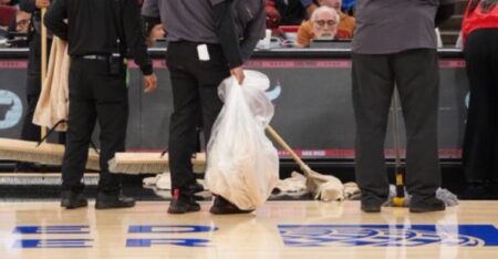 ・両チームの選手は通常通り試合前のウォームアップを行ったが、コートが滑りやすく安全ではないと判断した
