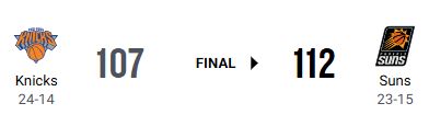 フェニックス・サンズがニューヨーク・ニックスに112-107で競り勝ち、直近5試合で4勝目を挙げた。
