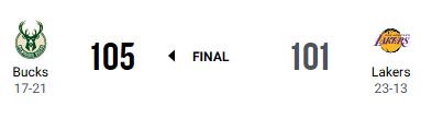 ミルウォーキー・バックスがロサンゼルス・レイカーズを105-101で下し、直近7試合で5勝目を挙げた。