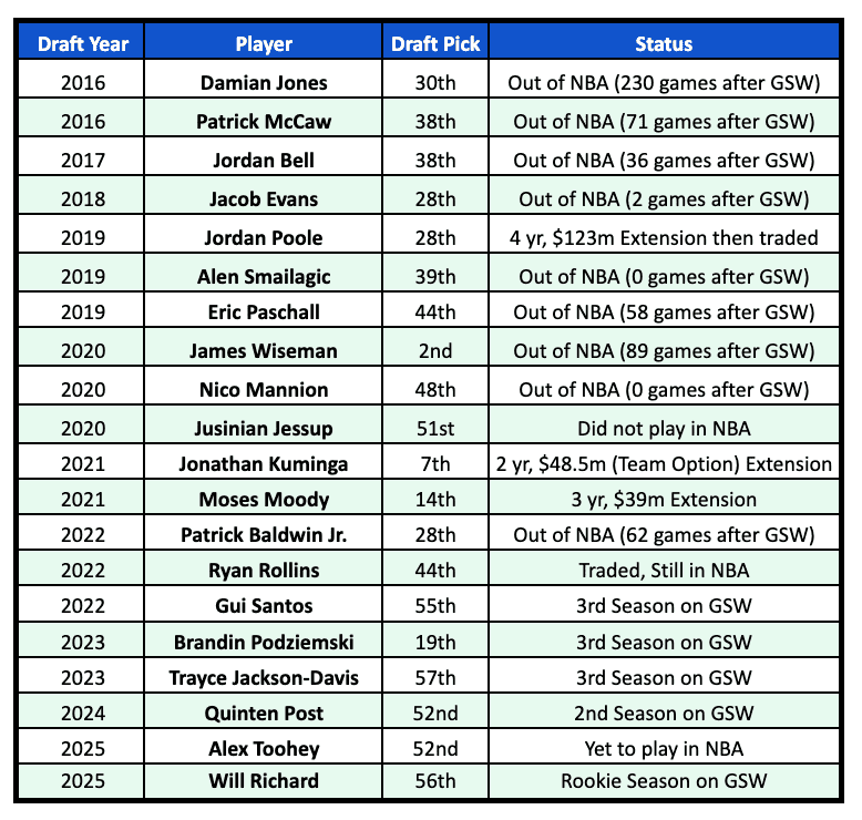 せっかくの高順位でスター選手を指名できなかったけど、2巡目や1巡目下位でローテ選手を指名できているから、ドラフト候補生は誰もGSWに行きたくないという意見は過剰な批判だと思うね