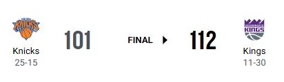 サクラメント・キングスがニューヨーク・ニックスを112-101で下し、今季最長の3連勝を飾った。 ニックスは連勝ならず、サクラメントでの試合は2023年3月以来の黒星となった。