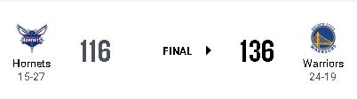 最終的にウォリアーズはチーム全体で23本の3ポイントを成功させ、出場した8選手が二桁得点を記録するバランスの良い攻撃でホーネッツを突き放した。