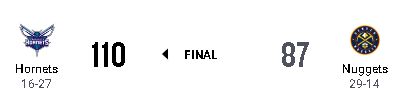 シャーロット・ホーネッツがデンバー・ナゲッツに110-87で勝利した。