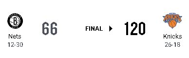 54点差はニックスの球団史上最大の勝利点差となった。ネッツの前回のニックス戦勝利は2023年1月28日で、以降はニックスが勝ち続けている。