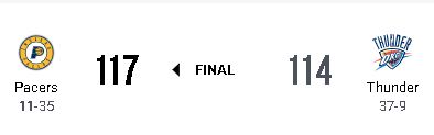 最初の方の試合もOKC相手にハリバートン無しでダブルTOまで行ってたし、そこまで不思議ではないな