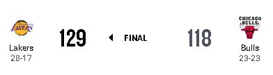 レイカーズは第1クォーター後半から第2クォーターにかけて25-6のランで主導権を握り、レブロン・ジェームズが前半だけで20得点を挙げるなどして最大20点のリードを奪った。 しかし第3クォーター、ブルズが猛追を見せ、ニコラ・ブーチェビッチのフリースローで一時81-80の1点差まで迫る。