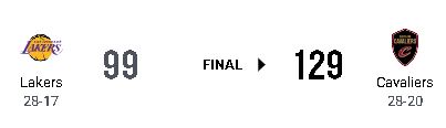 クリーブランド・キャバリアーズがロサンゼルス・レイカーズに129-99で大勝し、ホームで白星を挙げた。 レイカーズは連勝が2で止まり、今シーズンの成績を28勝18敗とした。