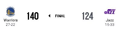 ゴールデンステイト・ウォリアーズはユタ・ジャズに140-124で勝利した。