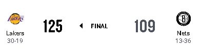 ロサンゼルス・レイカーズが125-109でブルックリン・ネッツを下し、ロード遠征を勝利で締めくくった。