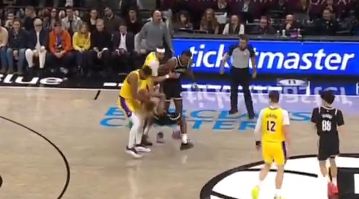Hachimura shows his strength, nearly lifting Clowney all by himself while both grabbing the ball