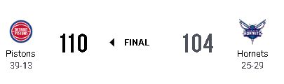 デトロイト・ピストンズがシャーロット・ホーネッツを110-104で下し、接戦を制した。