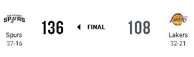 サンアントニオ・スパーズが136-108でロサンゼルス・レイカーズに圧勝し、5連勝を飾った。