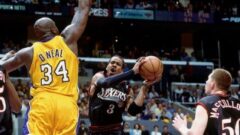 試合残り2分6秒で10本目のリバウンドを確保し、史上最年長となるトリプルダブルを達成してベンチに下がった。