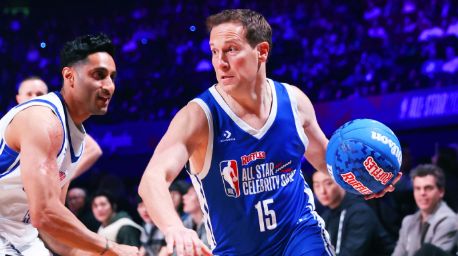 サンズのオーナー、マット・イシュビアが身長7フィート6インチのタッコ・フォール越しにシュートを決めた。