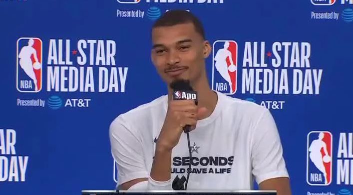 ・ビクター・ウェンバンヤマ(SAS)が、ロサンゼルスで行われるオールスター・フェスティバル(祝祭)に先立つ土曜日の記者会見で、ある記者から「レブロン・ジェームズ(LAL)が引退する時、あなたは泣くか?」と質問された。